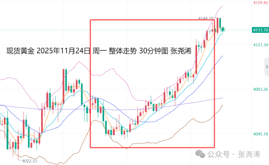 美联储12月降息概率已升至八成,多位重量级官员集体转鸽,叠加本周即将密集发布的偏弱经济数据,宽松预期彻底主导市场。与此同时,俄乌局势急剧恶化,基辅防空警报拉响,和平进程再度受阻,避险买盘强势回归。双重利好共振之下,黄金多头已全面占据主动权。短期回调都是低吸机会。
